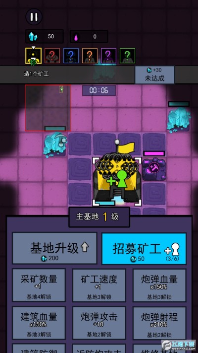 在这里你可以选择升级基地,也可以提升矿工速度、增加炮弹血量以及建筑物血量,还能通过增速,提升持续输出,满足这一前提条件的是基地需要升级。