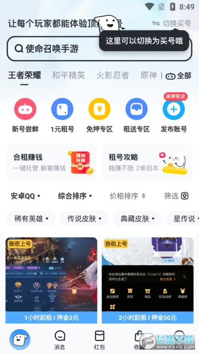 租号狂app是一款手机租号平台软件,软件中用户可以筛选自己需要的游戏账号内容,官方正规游戏交易平台,账号交易有保障,在这里快速即可选购自己心仪的账号,找回平台包赔,对软件感兴趣的话不妨点击下载试试!