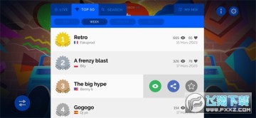 4、录制并和全世界玩家分享你的创作!如果获得足够的票数,你的混音作品就会出现在IncrediboxTop50排行榜里。