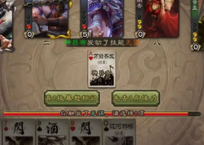 7、内奸则要在场上先清除除主公以外的其他人物(包括其他内奸),最后单挑主公。游戏开始时每个玩家随机抽取一张身份牌,抽到主公的玩家,要将自己的身份牌明示。其他人的身份牌不能被其他玩家看到。