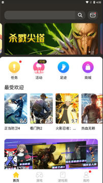 2、然后就会看点首页、游戏、游戏圈、我的四个板块,其中在首页中有着任务、活动、足迹、商城等功能,并且还会为用户推荐最受欢迎的游戏: