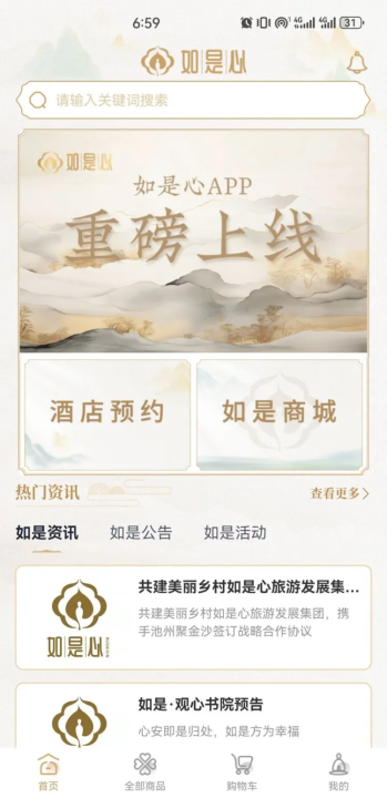 "如是心商城app:您的一站式生活购物与旅行助手!在这里,购物与出行变得前所未有的便捷与省心。我们精心打造了一个综合购物平台,汇聚了海量商品,从日常百货到潮流尖货,应有尽有,满足您全方位的购物需求。不仅如此,一键预订心仪酒店,无论是商务出行还是休闲度假,都能轻松搞定,享受舒适住宿体验。