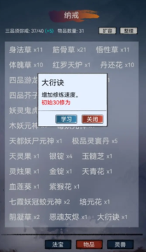 2.一开始的秘境不要刷太多次,完成任务往下打就可以了。元婴期之前的装备,材料,草药都没什么用。这其中,只需要保留加五维的草药,筋骨草,神魂草,悟性草,身法草,体魄草,以及后面带元神二字的附魔物品。