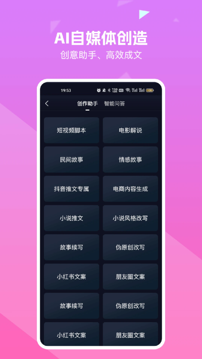 3. 选择功能:在软件首页,用户可以选择自己需要的功能,如文案创作、智能翻译、发言稿等。