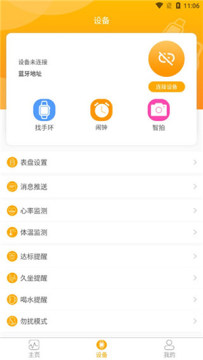 3、在设备中点击连接设备进行连接,即可体验久坐提醒、喝水提醒等功能;