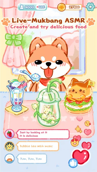 狗茶大师:吃播 ASMR 结合了吃播、ASMR 和宠物模拟的最佳元素。您将享受超可爱的视觉效果和治愈性的游戏玩法,搭配令人难以抗拒的吃播文化魅力。从制作完美的茶博巴到咀嚼宠物汉堡和宠物披萨,每时每刻都旨在带来放松和快乐。ASMR 效果,包括啜饮、咀嚼和吸食的声音,营造出玩家会喜欢的舒缓氛围。