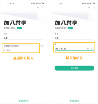 1、手机端也可通过局域网内自动搜索自动加入,也可手动输入IP搜索加入