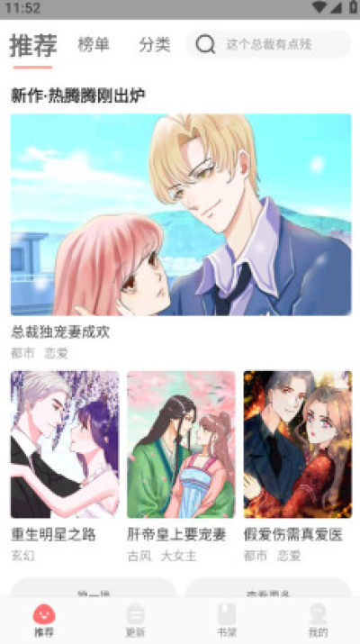 2、进入之后,首页共有三个模块供大家选择,要是没有你喜欢的漫画,小伙伴们还可以在右上方输入自己想看的漫画。