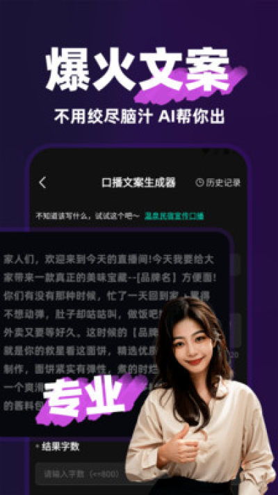 3、文案快速生成:输入关键词,自动生成口播文案。