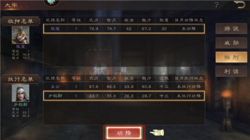3、在收押名单中挑选武力强且智力高的武将,进行游说。