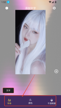 4、下方可以选择文字,颜色,透明度等,设置完成,点击右下角+号,输入需要添加的文字,点击确定。