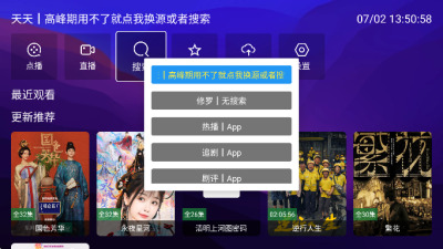 1、首先我们安装这个尊享影院TV版,在首页我们可以切换视频源,使用起来很方便。