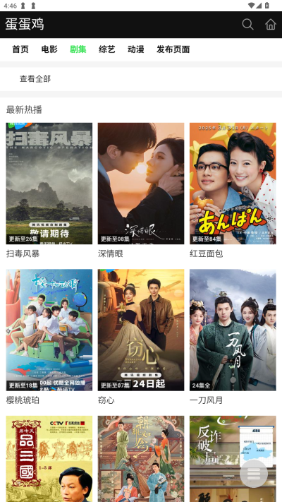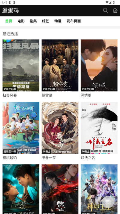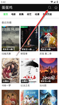 1.打开蛋蛋鸡影视App,进入应用首页可以看到最新热播节目