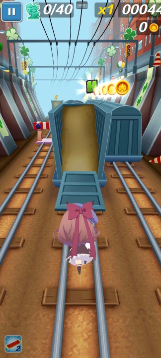 1、玩家操控角色左右移动或者跳跃来躲避前方的障碍物,获取沿途的金币。