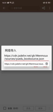 6、在弹出的页面中,可以看到已经成功导入的书源。可以勾选全部或选择特定的书源,然后再次点击确定按钮。