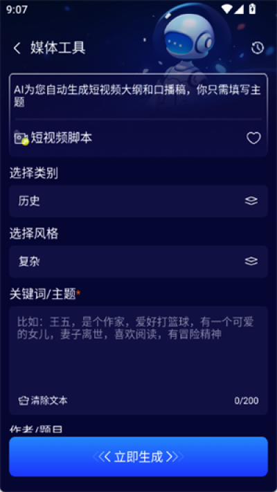 用户只需输入关键词或简要描述,即可快速生成结构完整、语言流畅的初稿内容。