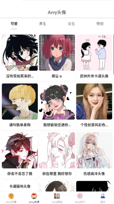 可通过可爱、女生、男生或情侣的方式查找喜欢的头像,方便快速找到;