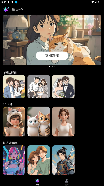 醒绘AI安卓手机版是一款基于AI的漫画头像生成转换软件,用户上传真人照片后可秒变动漫风格,支持多种艺术风格转换可以选择,提供专业级3D头像制作功能,支持批量处理多张照片,内置日漫动漫风格、3D立体卡通形象等热门模板用户可直接套用,快速生成个性化漫画形象!