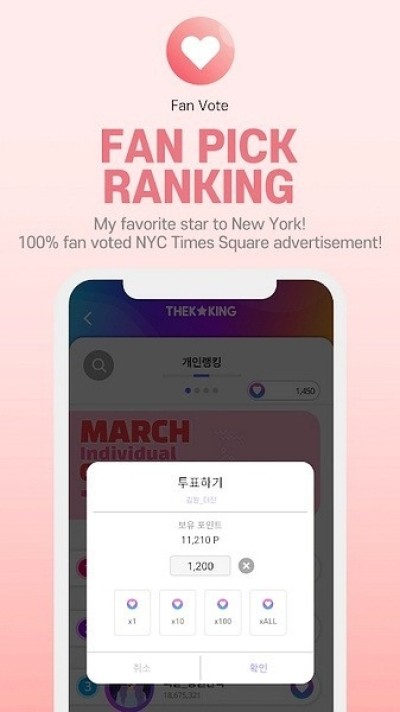 THEKKING是一款深受追星族欢迎、尤其在韩流粉丝中广泛使用的明星投票与资讯应用。该软件专注于提供最新、最全的偶像动态,用户可自由选择关注自己喜欢的明星,获取个性化推送,轻松参与投票互动,是粉丝们支持爱豆、获取独家内容的一站式平台。