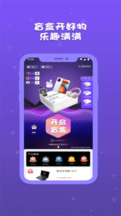 2、盲盒惊喜十足,个性化体验:以拆盲盒为核心购物形式,每次拆盒都能获得个性化惊喜,免费盲盒更是降低参与门槛,让用户随时感受惊喜降临;支持不满意兑换点券,灵活选择心仪好物,减少购物顾虑。