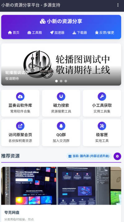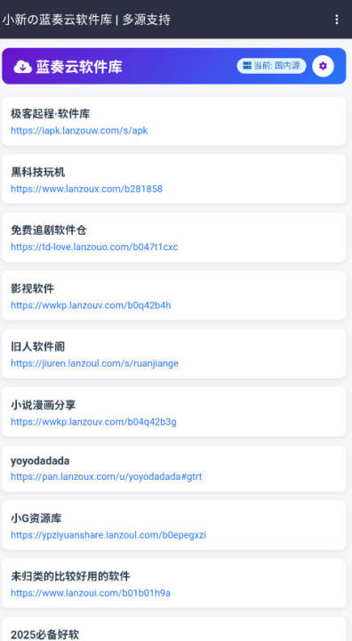 小新的资源分享app下载安装是一款聚合蓝奏云软件库、在线工具、实用资源的导航合集平台,致力于为用户提供「一站式资源获取」服务。平台涵盖软件、工具、文档、教程等全品类资源,所有内容免费开放,结合智能搜索与个性化定制功能,帮助用户快速定位所需资源,满足学习、工作、娱乐等多场景需求。