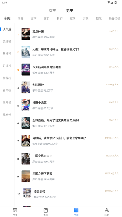 福书网不仅囊括全网海量热门小说资源,还打破平台限制,引入神马、红袖、看书等国内知名小说站点的独家小说,且所有资源均支持免费阅读与追更。无论是当下热门的言情、悬疑、玄幻题材,还是小众的历史、科幻类小说,亦或是平台独家内容,用户无需付费即可畅享,彻底降低优质小说阅读门槛。