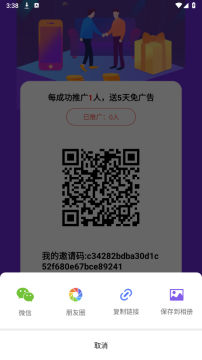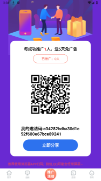 3、点击立即分享,每成功推广1人,可以获得5天免广告。