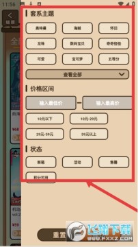 3、筛选页提供套系主题价格区间状态等筛选选项覆盖动漫IP价格段及商品状态支持精准查找满足用户个性化选购需求。