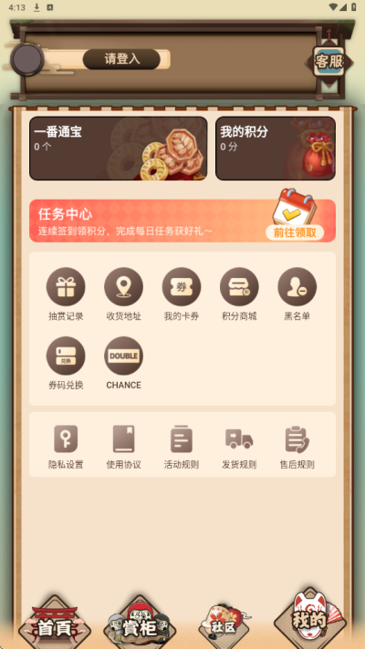 2、刺激一番赏抽赏玩法:核心亮点在于创新的一番赏玩法,模拟盲盒与扭蛋的未知惊喜感。用户参与抽赏时,如同开启盲盒,抽赏结果充满随机性,未知的惊喜时刻考验运气,成功抽中心仪周边时,能收获 “一发入魂” 的快感,让周边选购不再是简单的 “购买”,而是充满趣味与期待的体验。