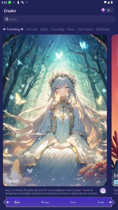 CrushX邀请您进入一个沉浸式的互动角色扮演世界,与您最喜欢的动漫角色一起玩!走进一个充满活力的世界,在这里您可以进行有趣、充满活力的对话,建立有意义的联系,并实现您的梦想场景。