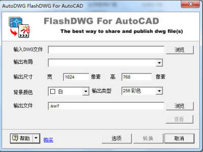 dwg格式文件是一个在工程制作方面常用的专业软件cad的专用文件格式,而swf格式文件是flash播放器的专用格式,通常用浏览器或是其它播放器就可以打开了,这里给您提供的是一个将dwg格式的文件转换成swf格式的文件,用于在网页里显示CAD文件,避免因客户端没有安装cad软件而打不开图纸。也就是说,客户无须安装CAD软件也可以查看CAD图纸。