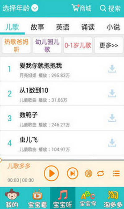儿歌多多,拥有十万儿歌故事资源,适合0-10岁儿童及家长使用。