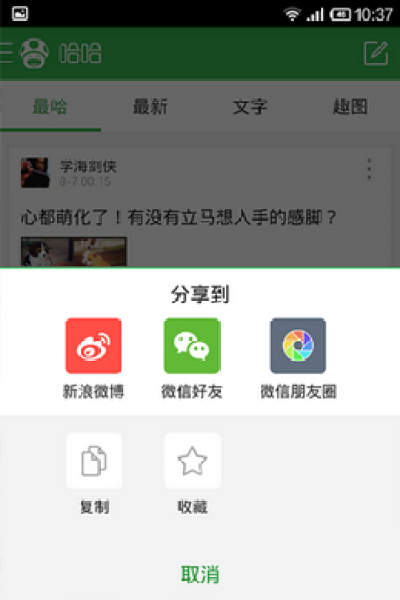傲游哈哈是一款聚集各种搞笑趣事趣图的手机应用软件,每日准时新鲜特供海量爆笑段子,让您欢乐不停,还有各种哈友即时互动,让您的生活轻松暖到100度,大家赶快来下载体验吧!