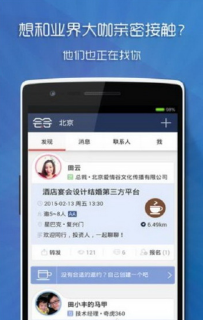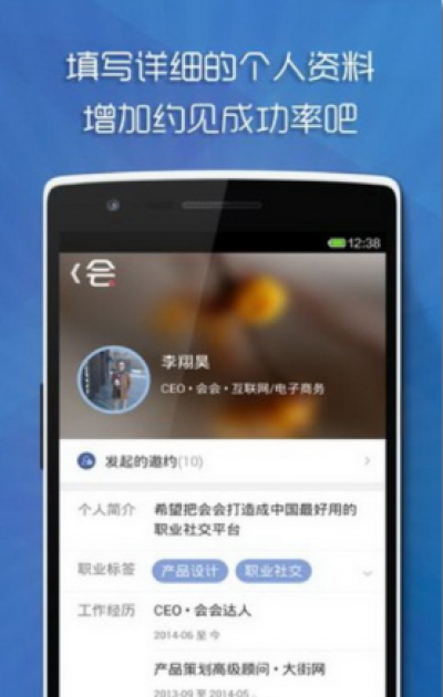 会会通过线上邀约促成线下见面,或许邀来吃饭的人解决了你工作上的疑问,或许约来喝咖啡的就是你未来的合伙人,或许一次见面让一个新产品诞生,突破你的三点一线,通过会会来认识更多的职业人吧.会会正在公测中,欢迎大家申请注册.填写详细的职业,教育信息将帮助我们尽快通过您的申请.
