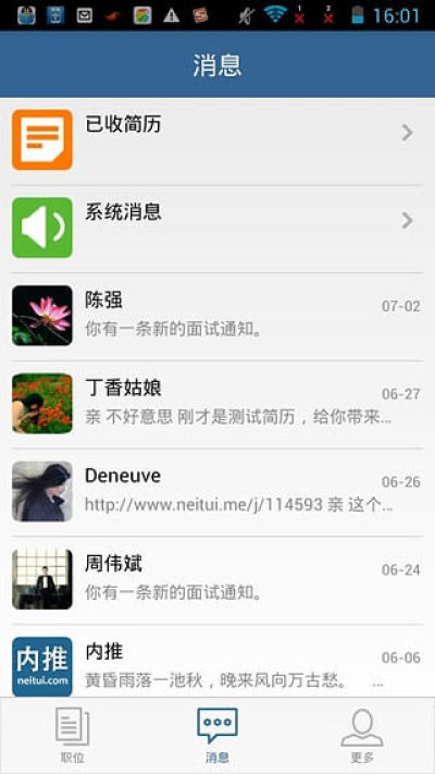 内推是一款互联网大众招聘平台,我们每一个平凡的人都可以来这里找工作。没有学历、教育背景的要求,不歧视任何一个人,需要找工作的朋友都可以来这里看一看,相信你一定能在这里找到让自己满意的工作的!