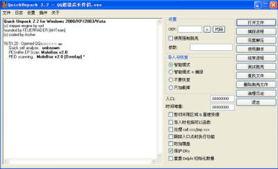 2.12,FSG 1.0/1.33/2.0,MEW10,MEW11,PECompact 1.x/2.x'。如果目标无法被脱壳,Quick Unpack 将会采取强力模式进行脱壳(Quick Unpack 会自动计算、分辨,前提是 EIP=OEP,并且断点在最后一个)。