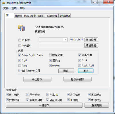 在安装一些重要的官方软件的时候经常会被提示机器码无法使用的情况,这个时候最简单有效的方面就是直接修改我们的硬件信息。牛逼机器码硬件信息修改工具是一个可以修改你电脑上任意组件数据的一个工具,这个软件就算不会用也含有个一键修改功能,慎重使用啊但是功能还不错!
