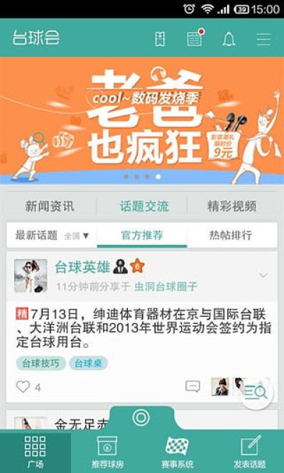 台球会是专门为台球爱好者准备的一个手机应用,大家不仅可以通过它快速找到身边的球房,同时还可以寻找同样喜欢台球的朋友一起聊球和约球,感兴趣的朋友快加入进来吧!