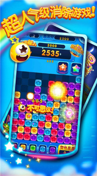 全民消星星是一款消除游戏,手机上下载量最多的休闲益智游戏消星星,每天上百万人狂点星星。现在是不是需要来点创新了? 全球首创加入三种不同的玩法的消星星,让每个人都可以得到无限乐趣。独创两种不同的操作方式,糙快猛和技术型选手都能得心应手。