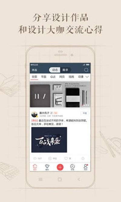 4.作品分享:发布自己最新作品,和设计大咖分享交流心得。