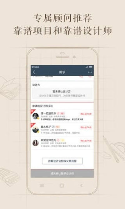 【找设计师,上设计宝】这里每天有众多优秀设计师在线交流、分享设计心得;精选全球优秀作品,帮你发现创意,找到灵感;每天都有高端靠谱的设计项目等你发现,我们为每个项目匹配专属顾问,为你推荐最靠谱的设计师,交易过程平台全程监管,担保交易更安全。