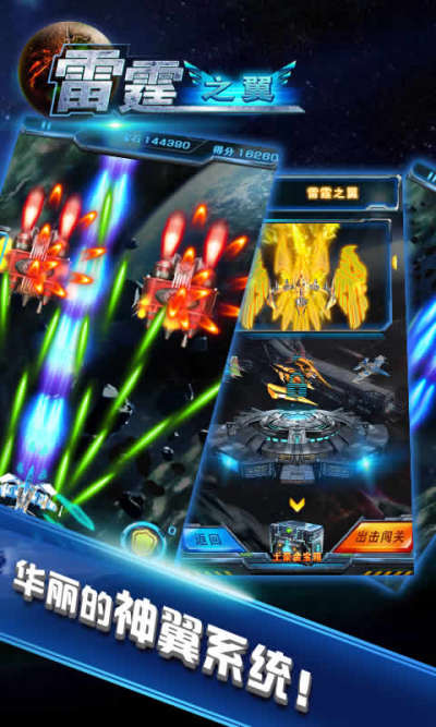 游戏画面绚丽,技能夺目,多种战机均可强化。更有创新神翼系统带给你非凡的感觉。