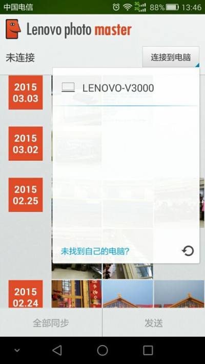 软件安装完成后,可以出现以下界面,点击连接到电脑,就会出现要连接的笔记本(下图以V3000举例)