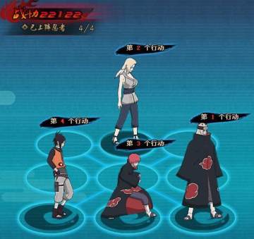 第一回合:大蛇丸普攻,火主分身2次死亡,蝎傀儡吃大蛇丸一次普攻,接着蝎起手一套连击,火主苍炎释放的时候迅速按下修罗道奥义(用来打断大蛇丸奥义,注意这里非常重要!),接着进入第二回合。