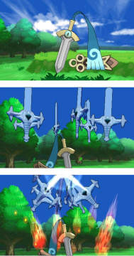 口袋妖怪系列向来就以造型奇特的精灵吸引着玩家,这次3DS新作《口袋妖怪XY》就曝光了一个剑形新妖怪,其名为Honedge,官方介绍里描述此剑内藏有一个古老的灵魂。Honedge平时是呆在剑鞘中,当战斗时就会从剑鞘里出来,该新妖怪有一个名为“剑舞”的技能,可以召唤6只剑一同攻击,非常有意思的设定。