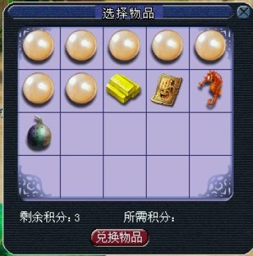 积分在“捕鱼人”处换取经验奖励、储备金奖励、物品奖励,兑换钓鱼法宝、称谓、华丽的鱼竿等。