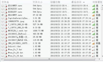 扫描完以后,按最后访问排序,会看到前面几个是save后缀名的文件,因为我刚才删掉的存档文件是87.2KB的那个,所以我是要恢复 $R12GMTF.save 这个文件。
