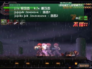 方向键或WASD控制人物运动,Z键或J键轻型攻击,K键或X键重型攻击,L键或C键短跑,I键或S键防御,Q键或A键切换武器,P键或F键暂停,I+L或S+C躲避。