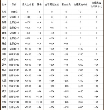 【强化属性激活条件一览表】