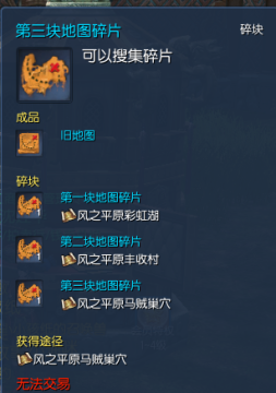 第三张碎片获得地点:马贼巢穴BOSS战利品箱子开启可获得。